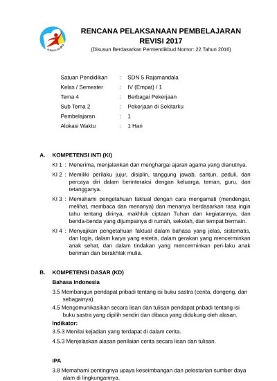 Berikut rpp kelas 4 kurikulum 2013 revisi 2017 tema 4 berbagai pekerjaan .